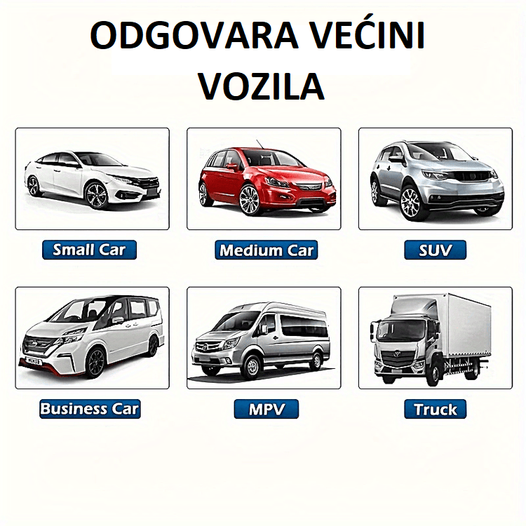 Sa dimenzijama 110 x 64 cm, odgovara većini automobila – mali gradski modeli, porodične limuzine, SUV-ovi…