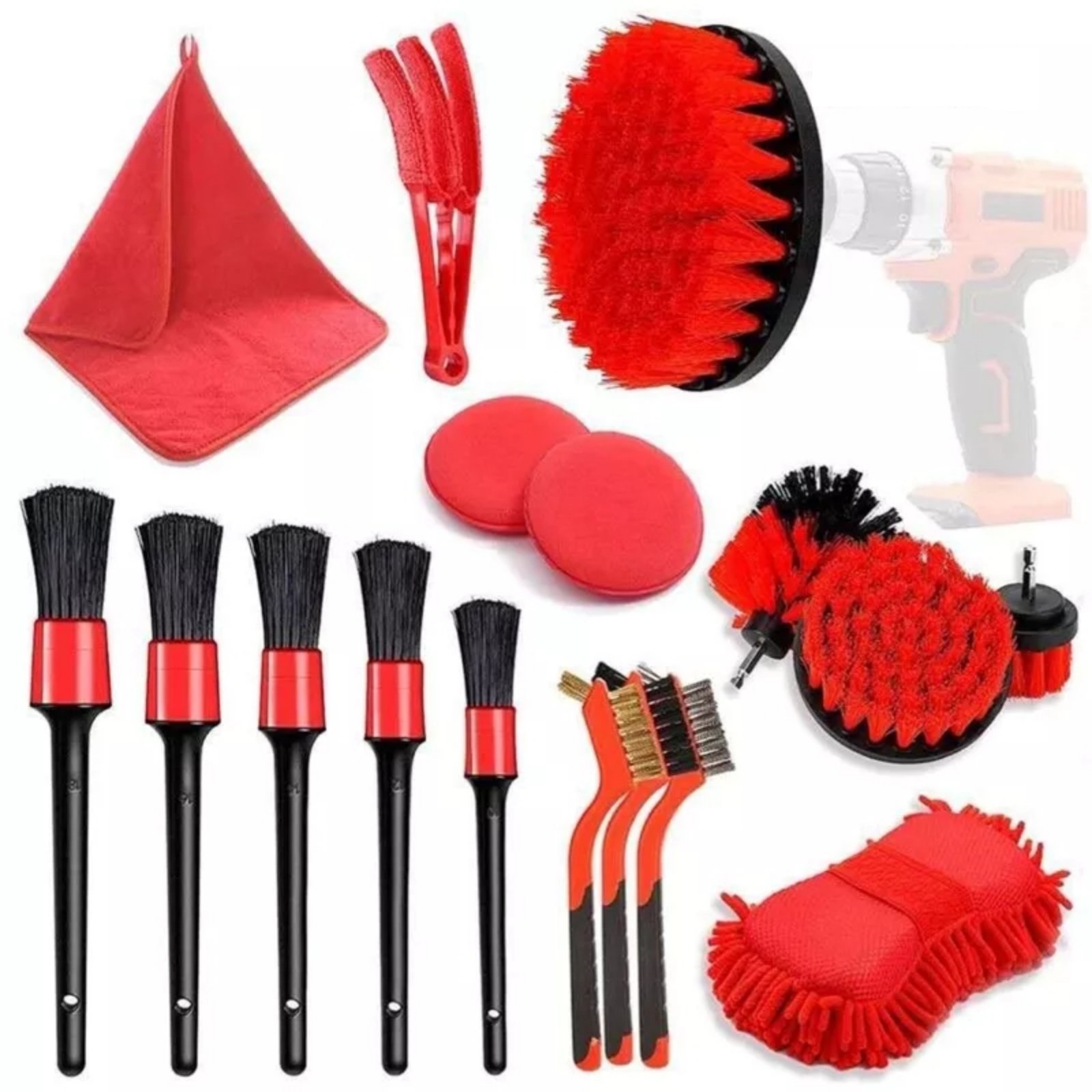 U kompletu se nalaze nastavci za bušilicu koji olakšavaju uklanjanje uporne prljavštine, četke različitih veličina za precizno čišćenje, kao i žičane četke za metalne površine. Rukavica za pranje omogućava nežno i efikasno čišćenje bez oštećenja laka, dok peškir služi za završno brisanje i poliranje kako bi vozilo dobilo sjajan završni izgled.