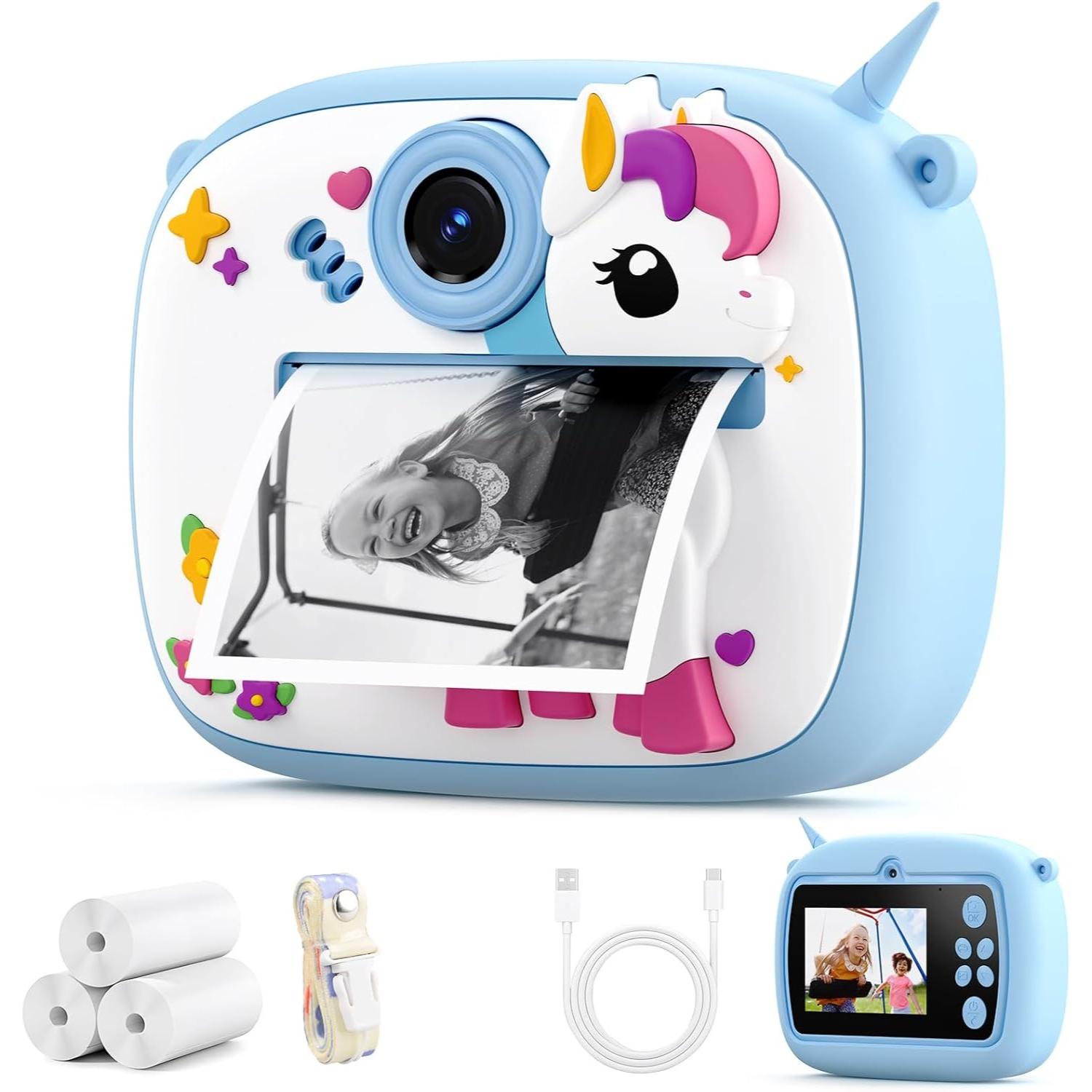 Plavi Unicorn dečiji fotoaparat sa štampačem – Magija uspomena u svakom trenutku