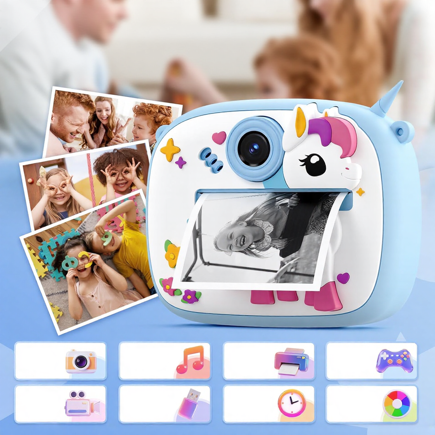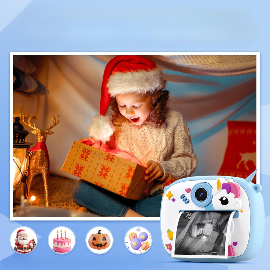 Pretvori svaki trenutak u čaroliju uz plavi Unicorn fotoaparat za decu! Snimaj, stvaraj i odmah štampaj svoje omiljene fotografije, kako bi svaka avantura postala uspomena koju možeš držati u rukama. 🎉