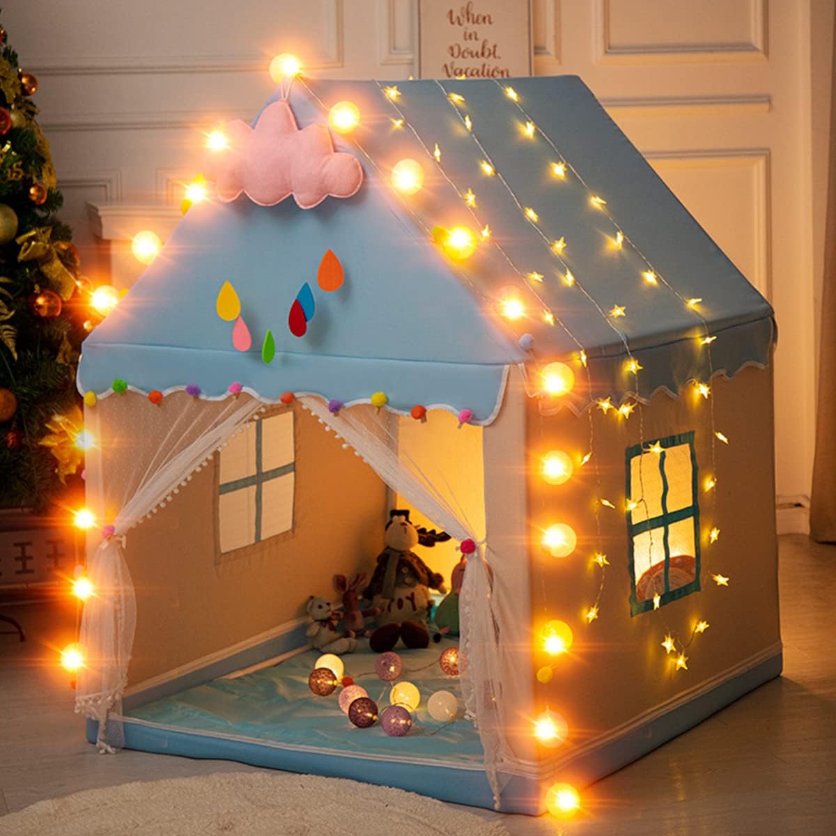 Ovaj šator u obliku kućice pruža deci njihov sopstveni prostor za maštovite igre, skrivanje, čitanje slikovnica ili druženje sa drugarima.