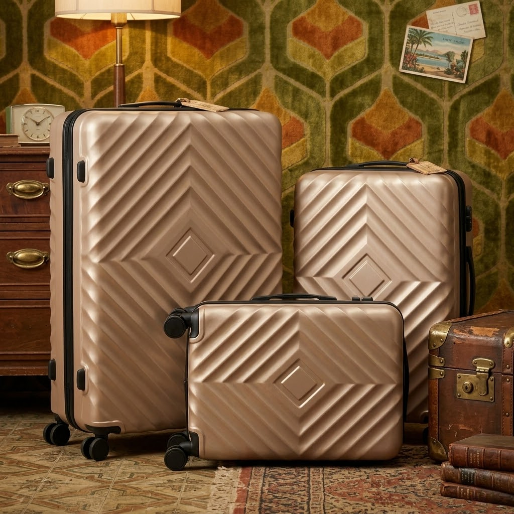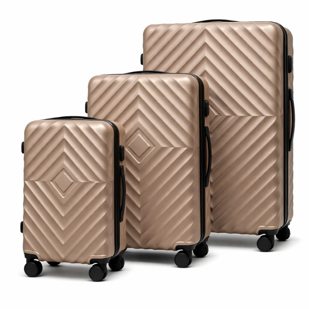Za putnike koji vole da svaki odlazak bude glamurozan i organizovan, ovaj set kofera u roze zlatnoj boji je idealno rešenje 🌸 Minimalistički, ali luksuzan dizajn sa modernim Chevron reljefom kombinuje stil i praktičnost za svako putovanje.