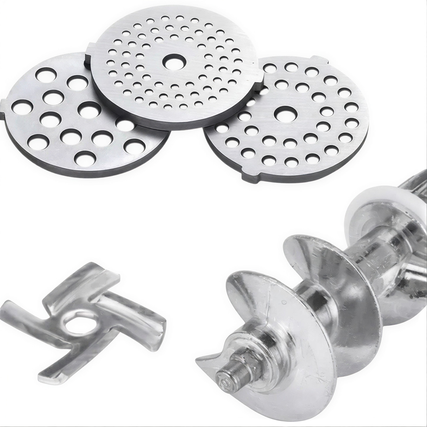 U kompletu se nalaze različite metalne ploče koje omogućavaju izbor između finog, srednjeg i grubog mlevenja, pa lako prilagođavate teksturu prema receptu. Mašina je pogodna i za pravljenje domaćih kobasica, što je čini idealnim izborom za svaku kuhinju.