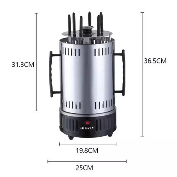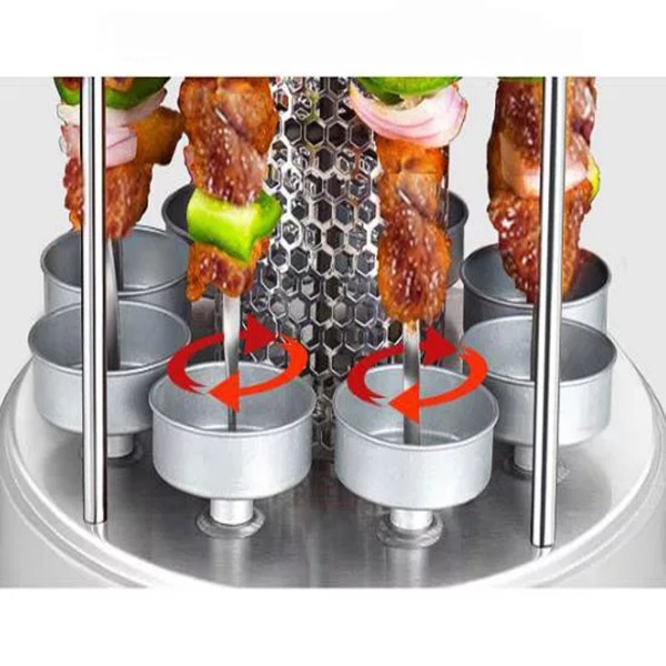 • Jednostavna priprema: Sastoji se od posude sa metalnim ražnjićima dužine 25 cm, grejnih elemenata i poklopca koji reflektuje toplotu. Ovo osigurava ravnomerno pečenje mesa i povrća, bez rizika od zagorelih delova.