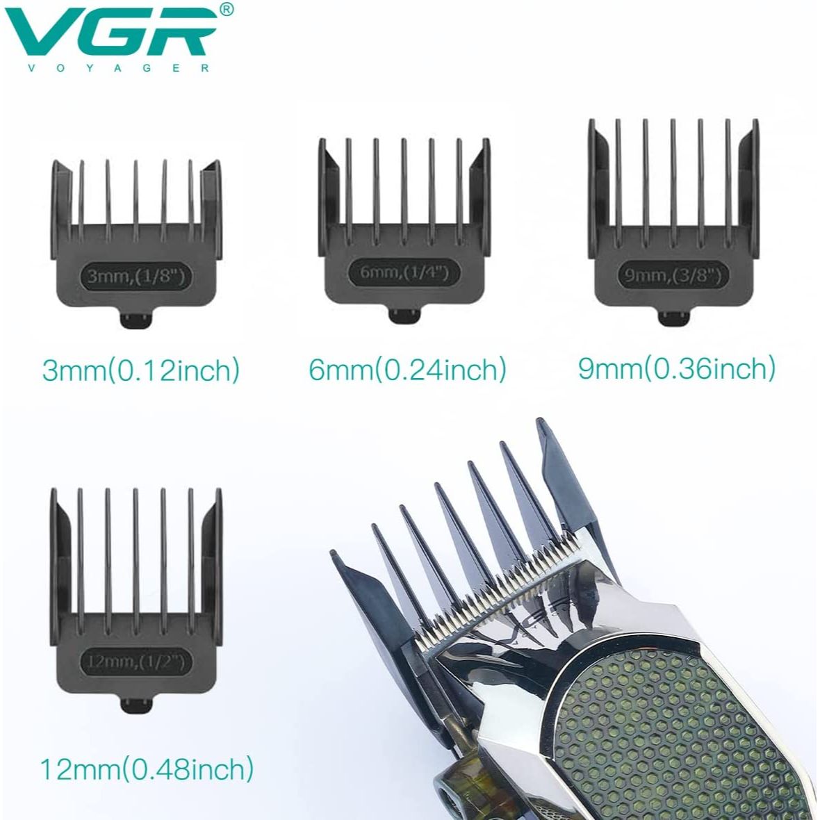 - Podesivi češljevi: Uključuje 4 priložena češlja koji omogućavaju podešavanje dužine šišanja od 3 mm do 12 mm.