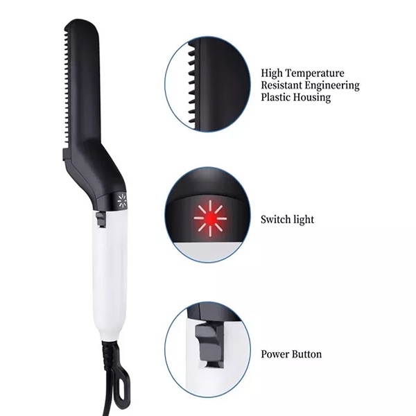 • Sigurno korišćenje: Češalj je dizajniran sa fokusom na sigurnost. Njegova osnova je izrađena od inženjerske plastike otporne na visoke temperature, što garantuje bezbednost prilikom korišćenja. Pored toga, češalj je opremljen zaštitom koja sprečava direktan kontakt grejača sa dlakom.