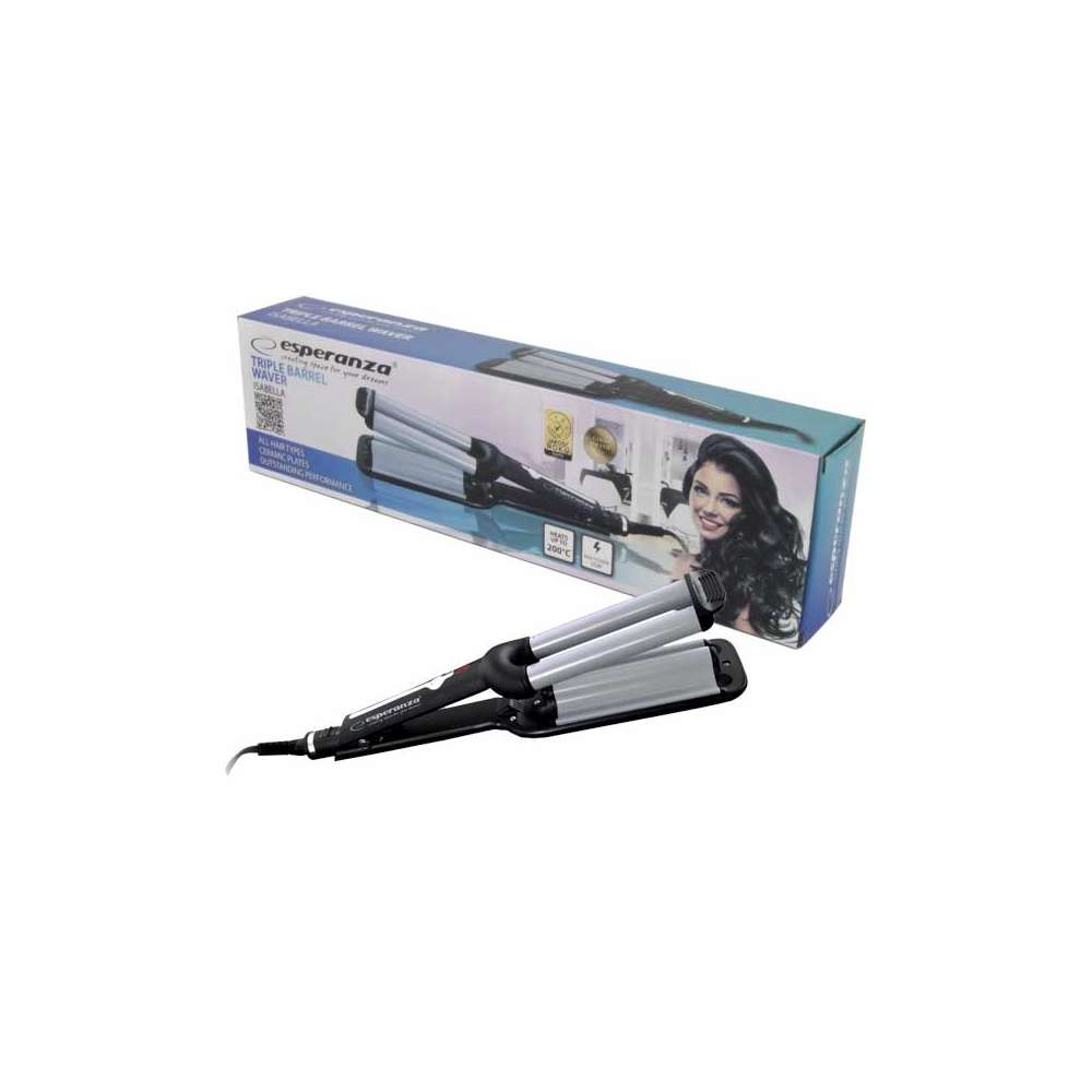 ESPERANZA EBL013 STAJLER ZA TALASASTE LOKNEEsperanza uvija? za kosu opremljen je s tri greja?a izra?ena od posebnog kerami?kog premaza koji daje savršeno zagrevanje i uvijanje kose, ?ine?i ih dugo glatkim i sjajnim. Za razliku od ostalih premaza, kerami?ki premaz ne ošte?uje kosu, a plo?e se prilago?avaju kosi bez obzira na njihovu debljinu. Zagrijava se na temperaturu od 220 °C, što osigurava brzo i precizno oblikovanje kose.