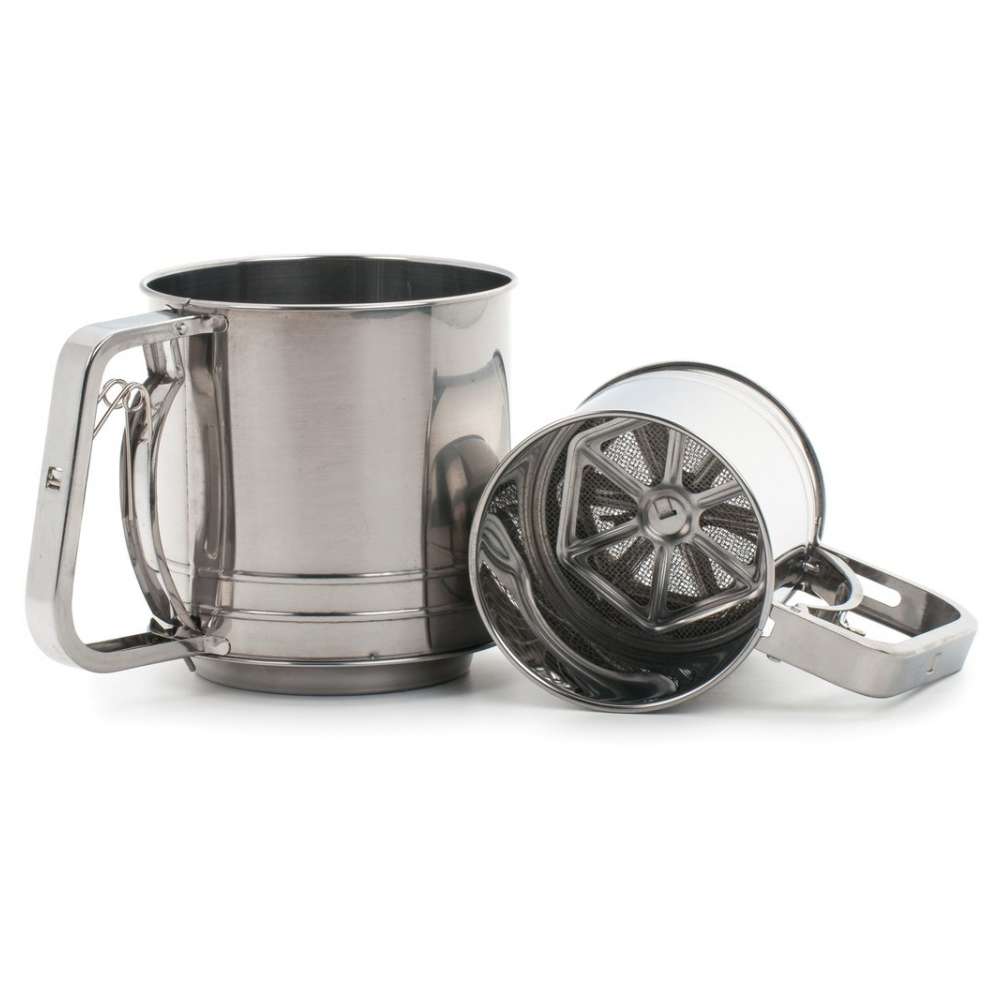 FLORIA ZLN2584 – SITO ZA BRAŠNO Sito za brašno Floria zln2584 pogodno je za prosejavanje i posipanje brašna, šećera u prahu, kakaa i ostalih sastojaka.Napravljeno je od polirajućeg nerđajućeg čelika.Pritiskom ručice pokreće se unutrašnji mehanizam za prosejavanje,što čini ovo sito jako pogodnim za olakšanu upotrebu.