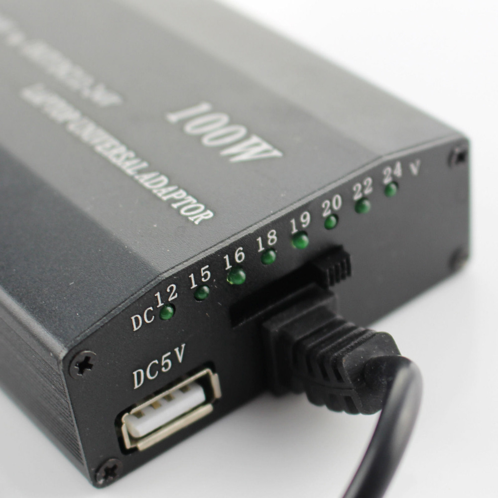 Punjač dolazi sa osam različitih priključaka za laptop, što ga čini kompatibilnim sa raznim uređajima: