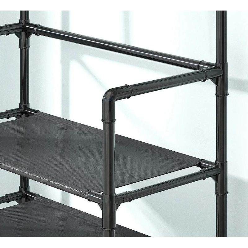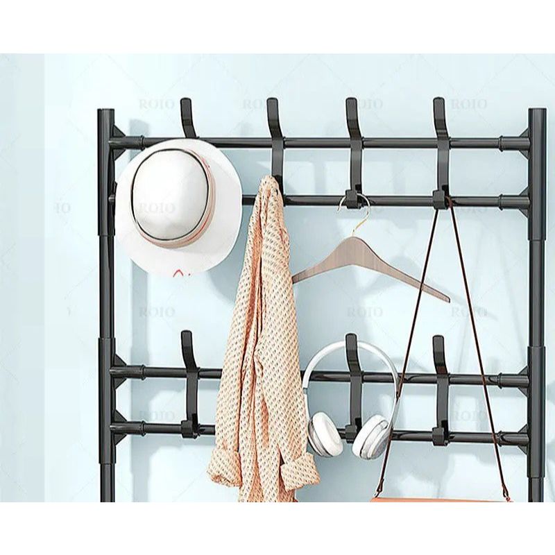 Jednostavan za montažu, lako se postavlja na željenu lokaciju. Sadrži prostrane police za obuću i praktične kuke za jakne, torbe, kapute i druge sitnice. Takođe, može poslužiti kao dodatak u kupatilu za organizaciju kućne hemije, peškira ili drugih potrepština. Zahvaljujući elegantnoj crnoj boji, savršeno se uklapa u svaki stil enterijera.